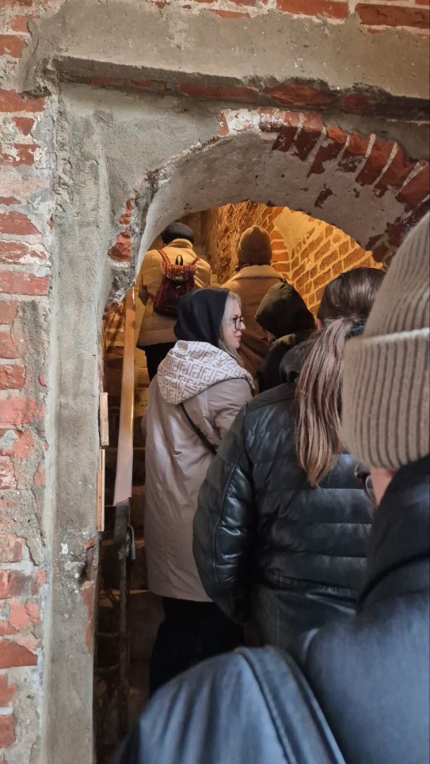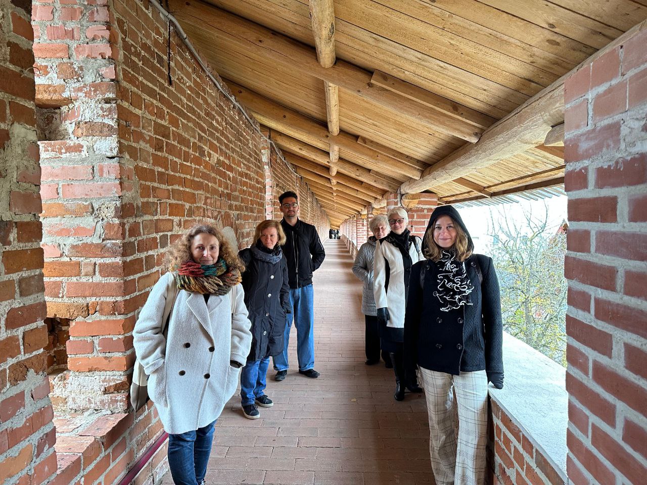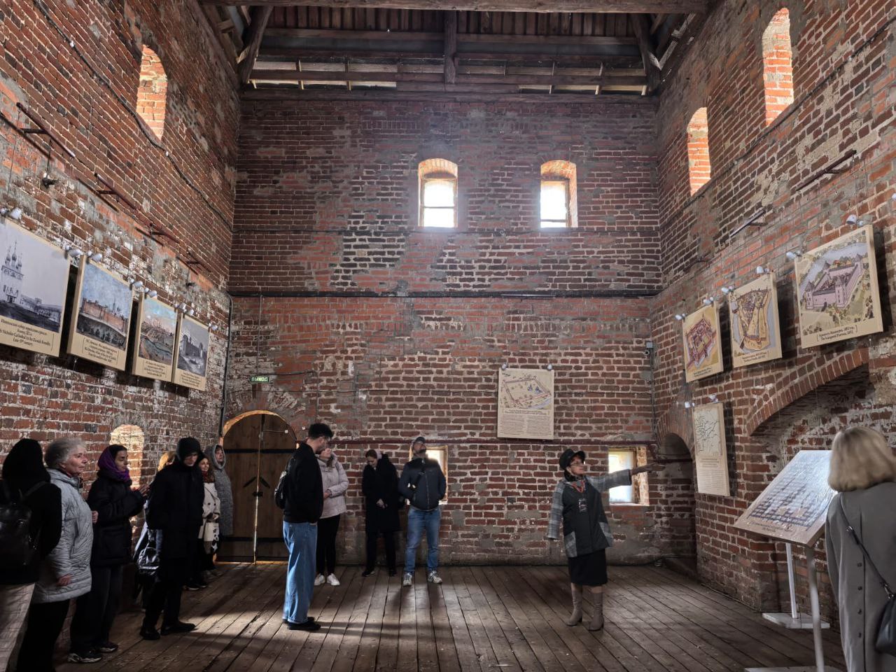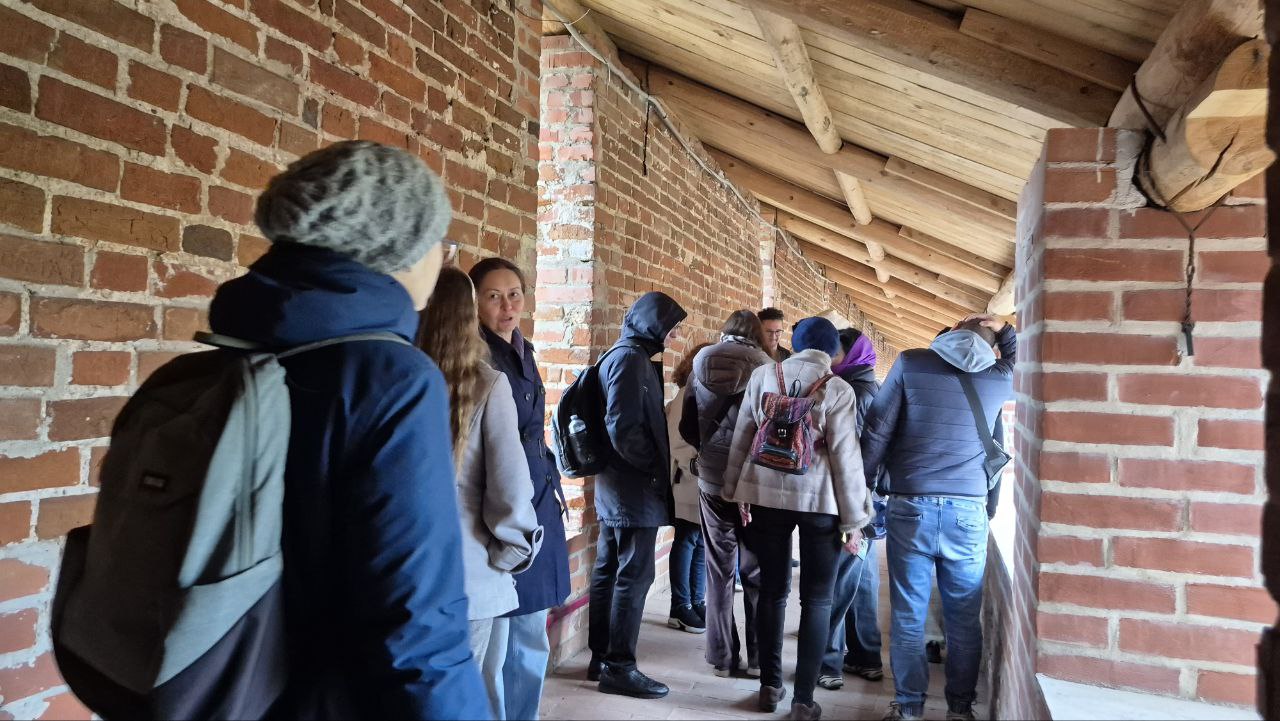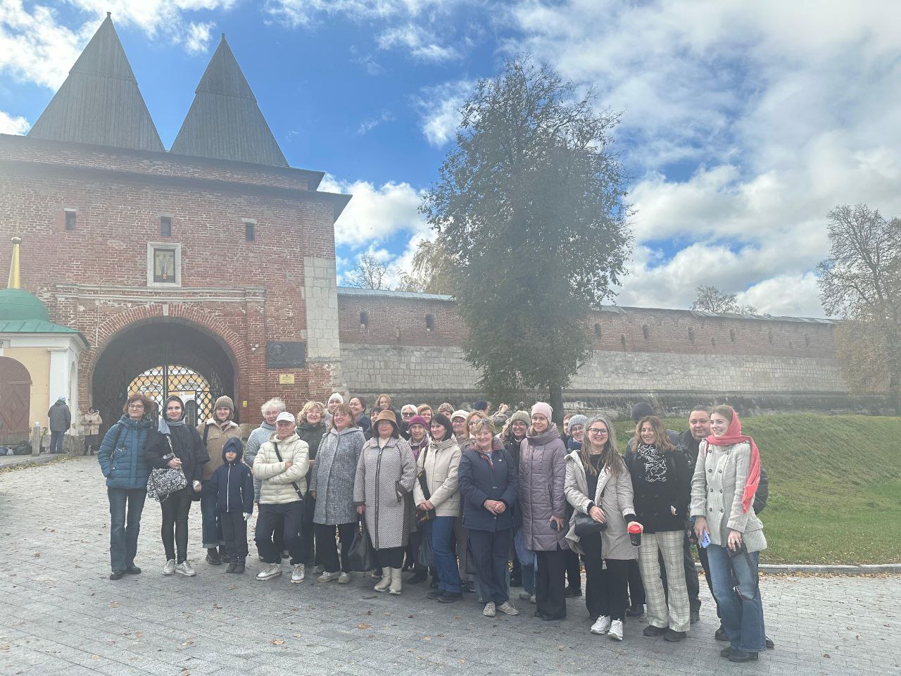 На этом наша экскурсия не закончилась: преподаватели поднялись на стены Зарайского кремля, где узнали об истории памятника русского оборонного зодчества первой трети XVI века и услышали немало чудесных легенд. С погодой нам тоже повезло: когда мы только въехали в город, из-за хмурых туч выглянуло солнце и небо прояснилось.