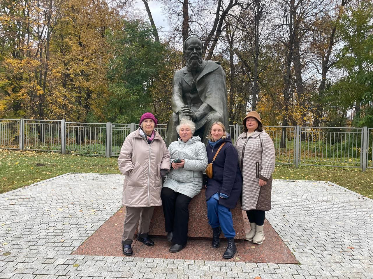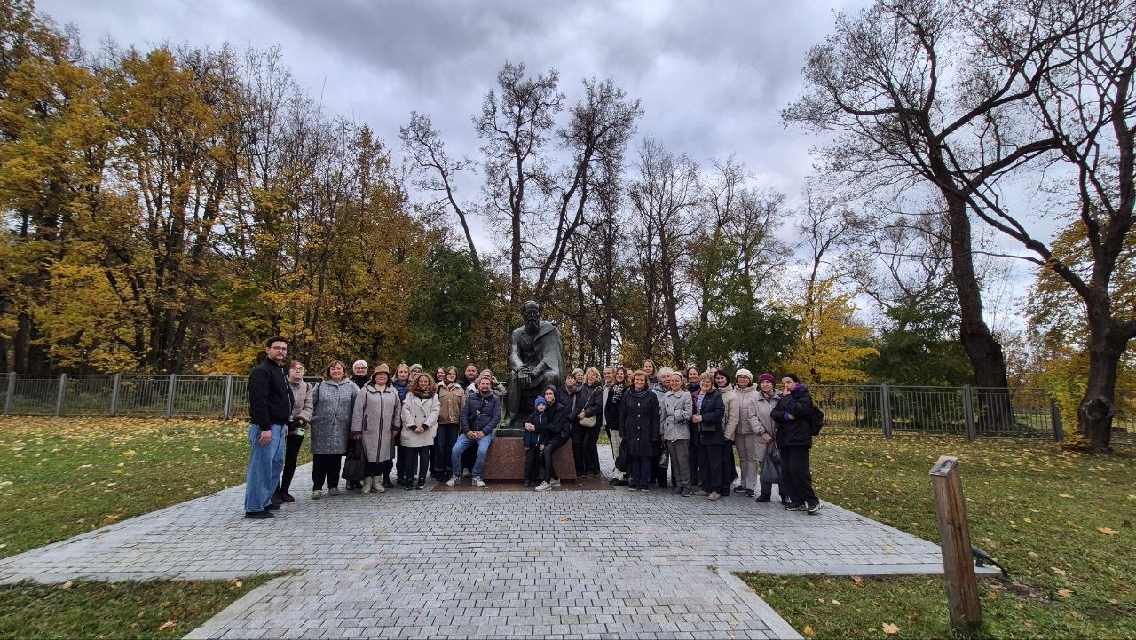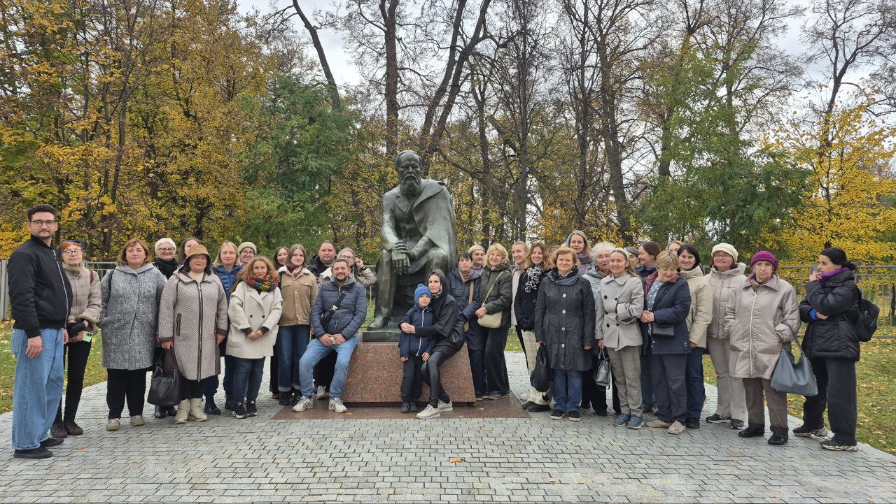 После вкусного обеда в местном кафе и небольшой прогулки по центру города, во время которой все члены нашего любознательного коллектива закупились зарайскими коврижками и сырами, автобус отправился в находящееся недалеко от города село Даровое. В нём находится музей-усадьба Ф.М. Достоевского с одноимённым названием. Время здесь словно остановилось!.. Территория усадьбы с небольшим домом – это не просто музей, а ключ к пониманию истоков творчества Фёдора Михайловича Достоевского, его философских размышлений о жизни: бескрайние поля, яблоневые сады, липовые аллеи… В этом месте прошло детство будущего писателя, и к этому уютному уголку русской земли он не раз возвращался в своих мыслях и произведениях, о чём нам увлекательно рассказали местные экскурсоводы. Особенно наших коллег впечатлили памятник Ф.М. Достоевскому и старый раскидистый дуб, который застал не одно поколение и, по-видимому, самого писателя.
